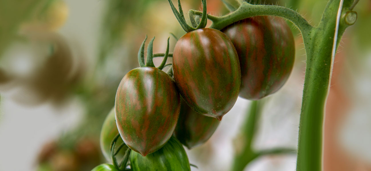 Die schwarze Tiger Eiertomate (35 - 40g) ist attraktiv, braun-rot gestreift mit kräftiger roter Innenfarbe und enthält mehr Fruchtfleisch und weniger Flüssigkeit. Sie beeindruckt durch ihr Aussehen und einem würzigen Aroma. Man kann sie gut in Scheiben schneiden und z. B. auf Brot und im Salat genießen oder als Snack zwischendurch.